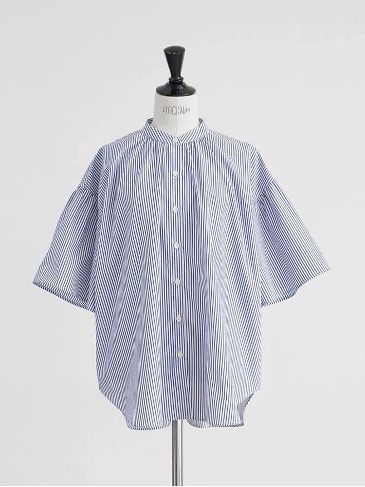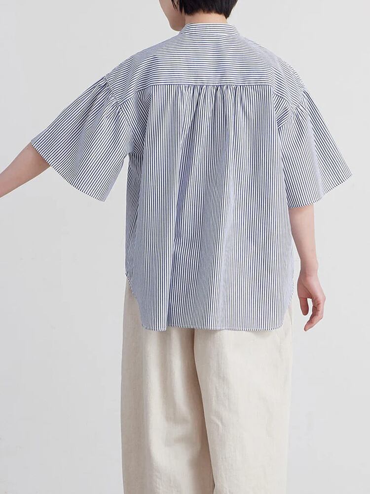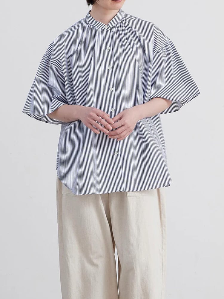 薄手ながら透け感はなく、ハリのある風合いにきれいな表面感でさらっとした肌ざわりが特徴のコットンブロード生地を使用したストライプ柄のブラウス