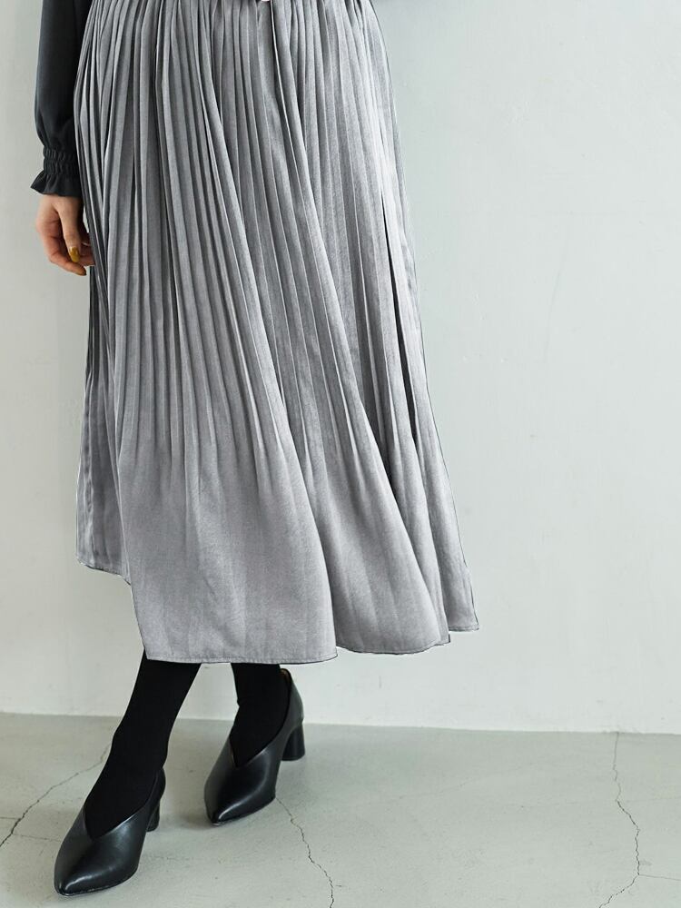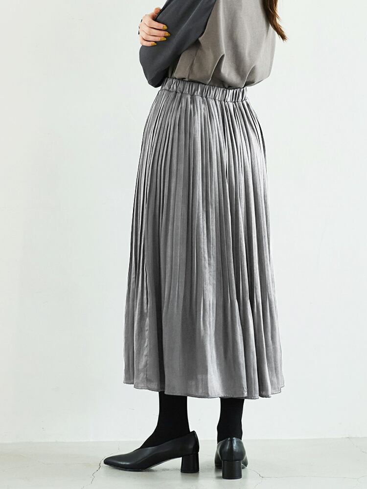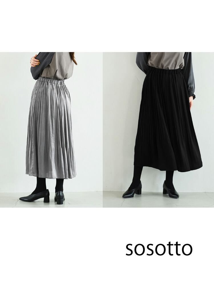 sosottoではお馴染みの光沢感を抑えたアンティーク調のサテン生地を使用した細かなプリーツの総ゴムスカート