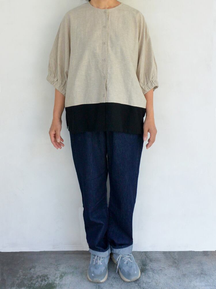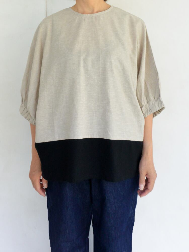 blue willowのコットンリネン配色切替ドルマンブラウス