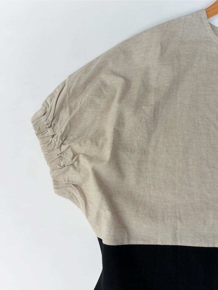 blue willow コットンリネン配色切替ドルマンブラウス BG
