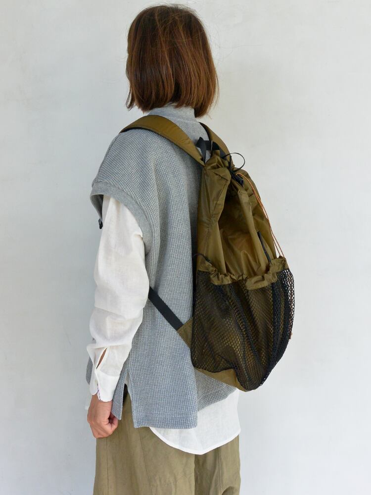 デザインアクセントとなっているメッシュのアウトポケットは、すぐ取り出したいものの収納やタオルや着替え等の、濡れても大丈夫な物の収納にもオススメです。