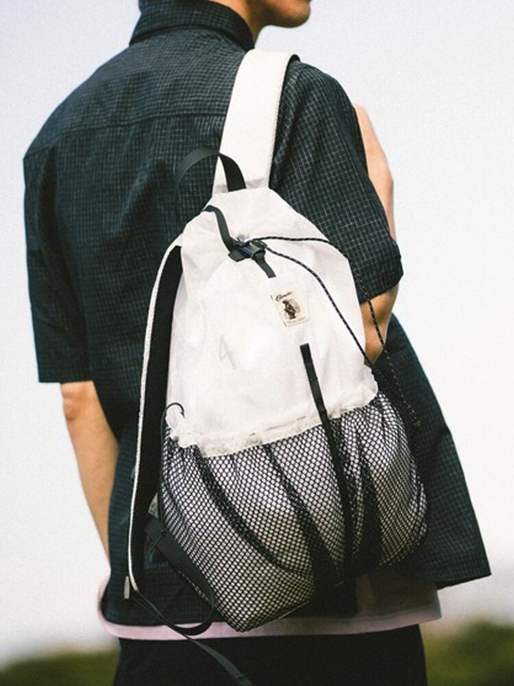 デザインアクセントとなっているメッシュのアウトポケットは、すぐ取り出したいものの収納やタオルや着替え等の、濡れても大丈夫な物の収納にもオススメです。