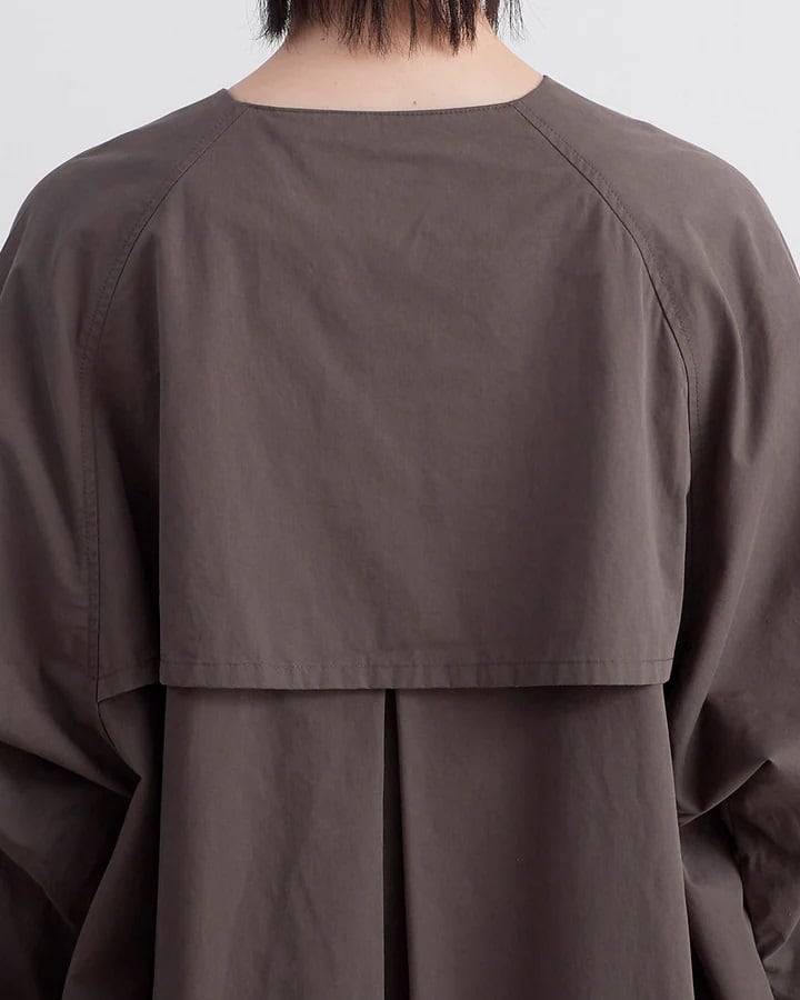 バックスタイルにトレンチコートなどに見られるアンブレラヨークを施し、ゆったりの身幅と大きめのアームホールになっているので袖口でインナーを選びません。