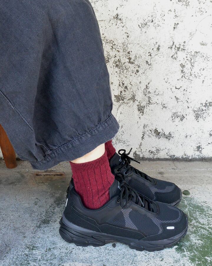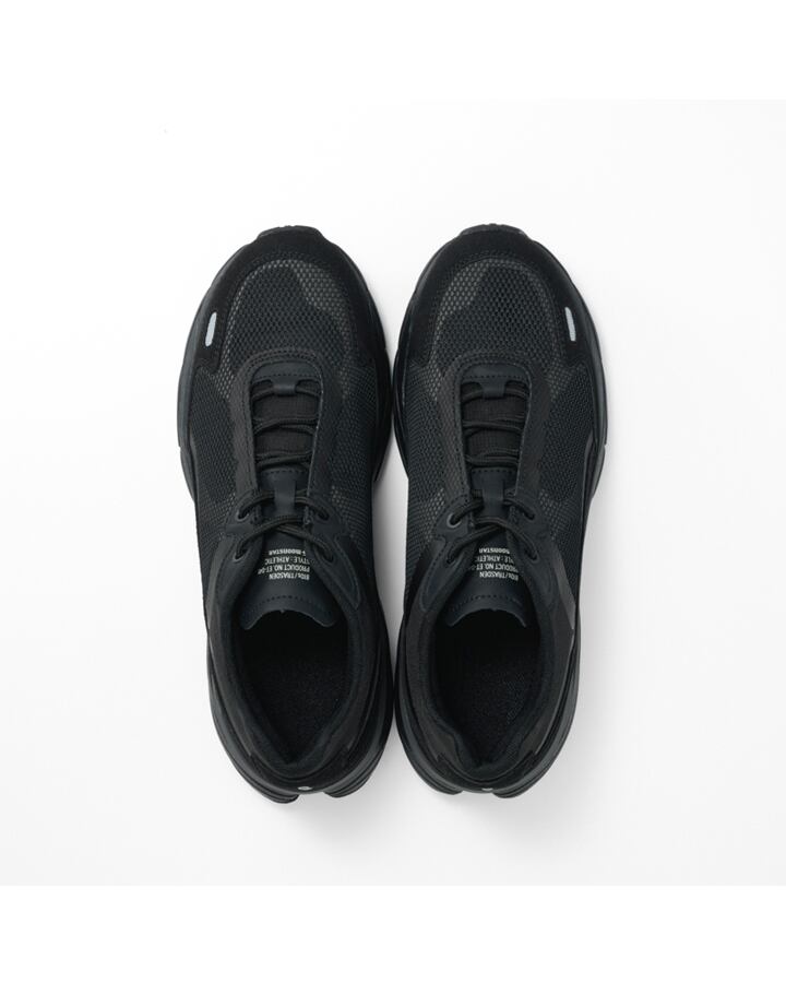 ミニマルな佇まいと耐久性を考慮した素材をベースにアッパーを構成し屈曲部の重なりを抑え、隠しサドルを搭載することで歩行時の足当たりや横ブレに配慮した設計になっています。