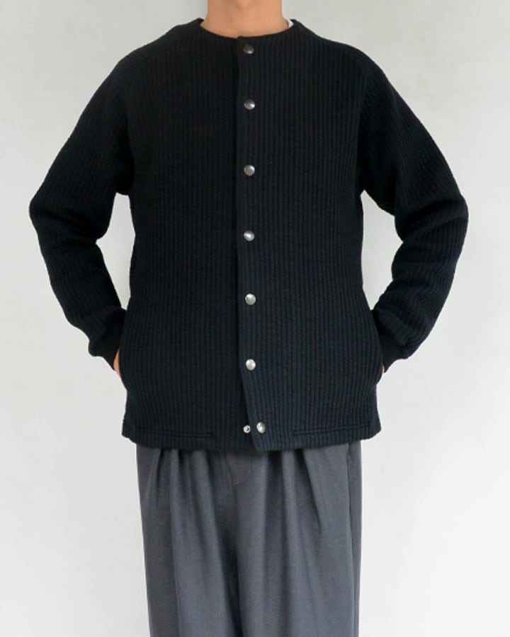 【再入荷なし】Audience 尾州コットンキルト ノーカラー スナップジャケット Black