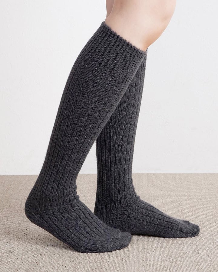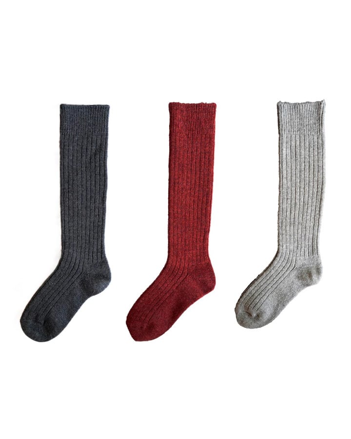 昨年も好評だった遠赤外線を放射する東レ株式会社のアクリルウール糸(ダイナホット)を使用したウール混のハイソックス。