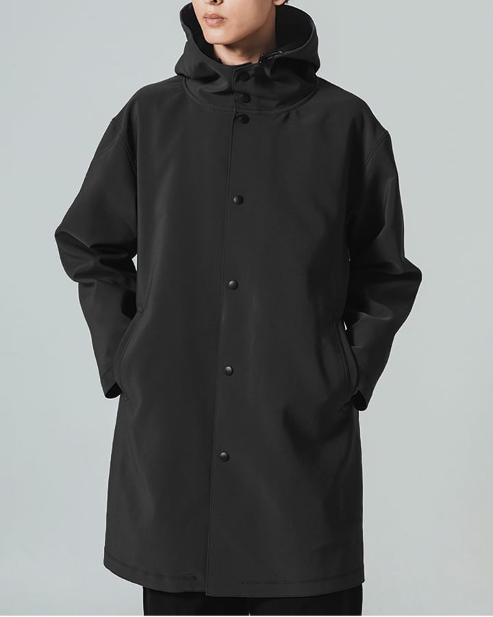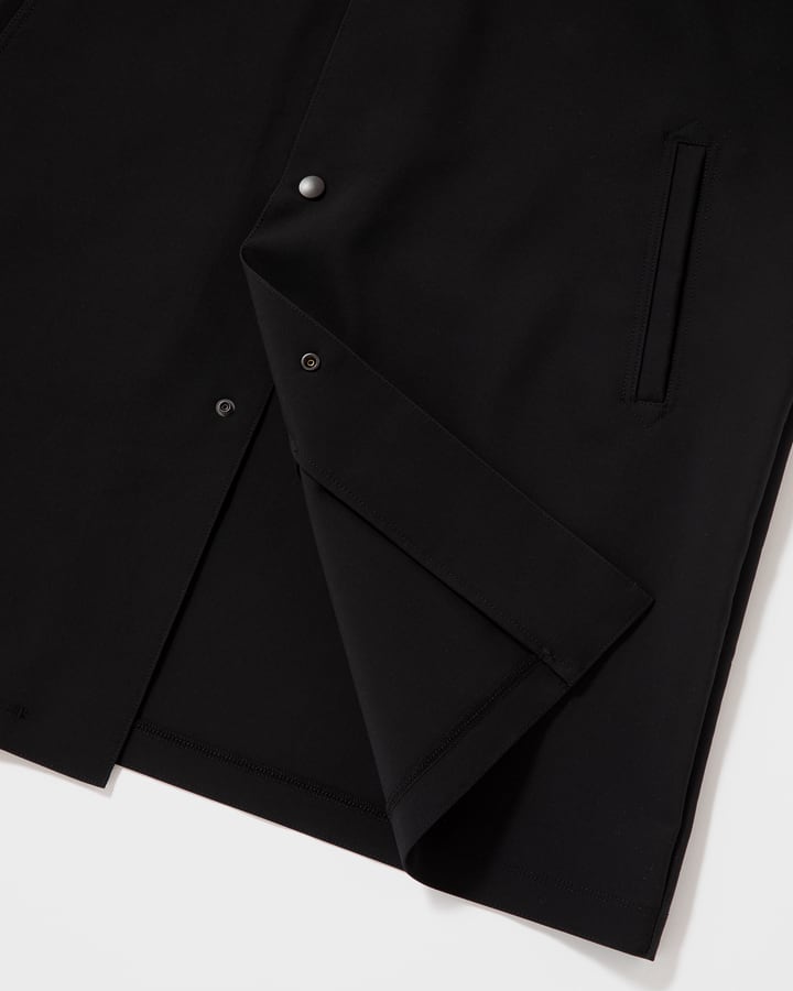 スナップボタンで首元まで持ち上がり、以前のシルエットよりも肩巾と身巾はゆったりした設計になっているので様々なシーンで活躍できます。