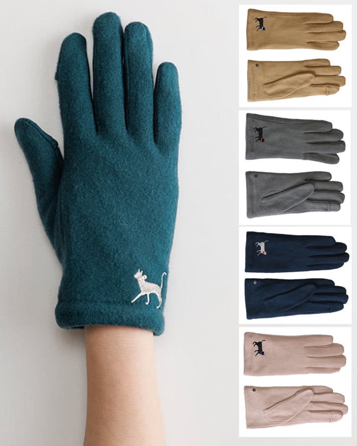 ORuKuBET おさんぽねこ刺繍 ジャージスマホ対応グローブ