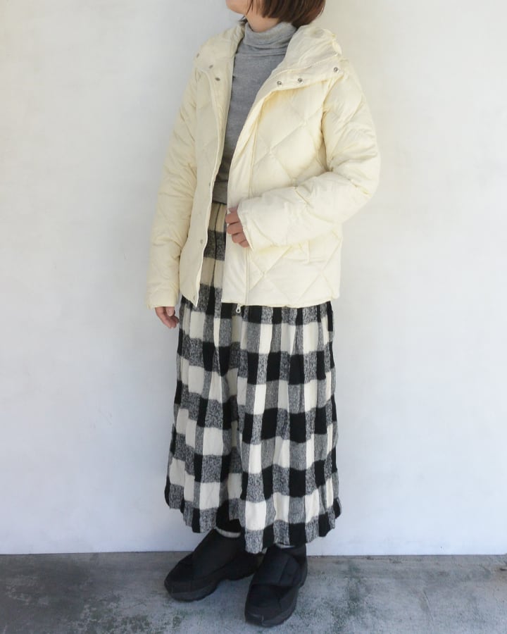 素材には柔らかく張りのある高密度ナイロン生地を使用し800FPの上質なダウンを使用しているので驚く程に軽量で温かさもあります。