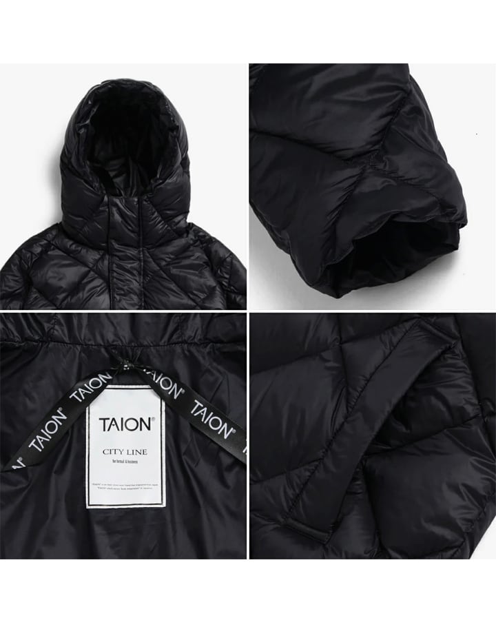 TAIONのCITY LINEのUNISEXのフード付きダウンジャケット。