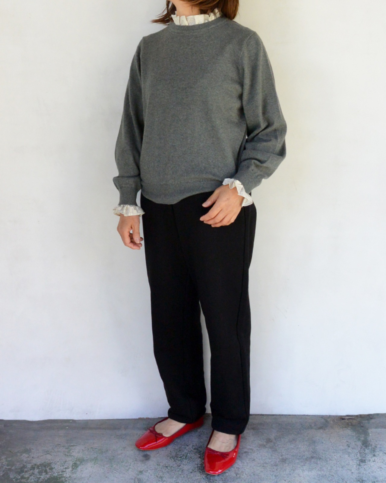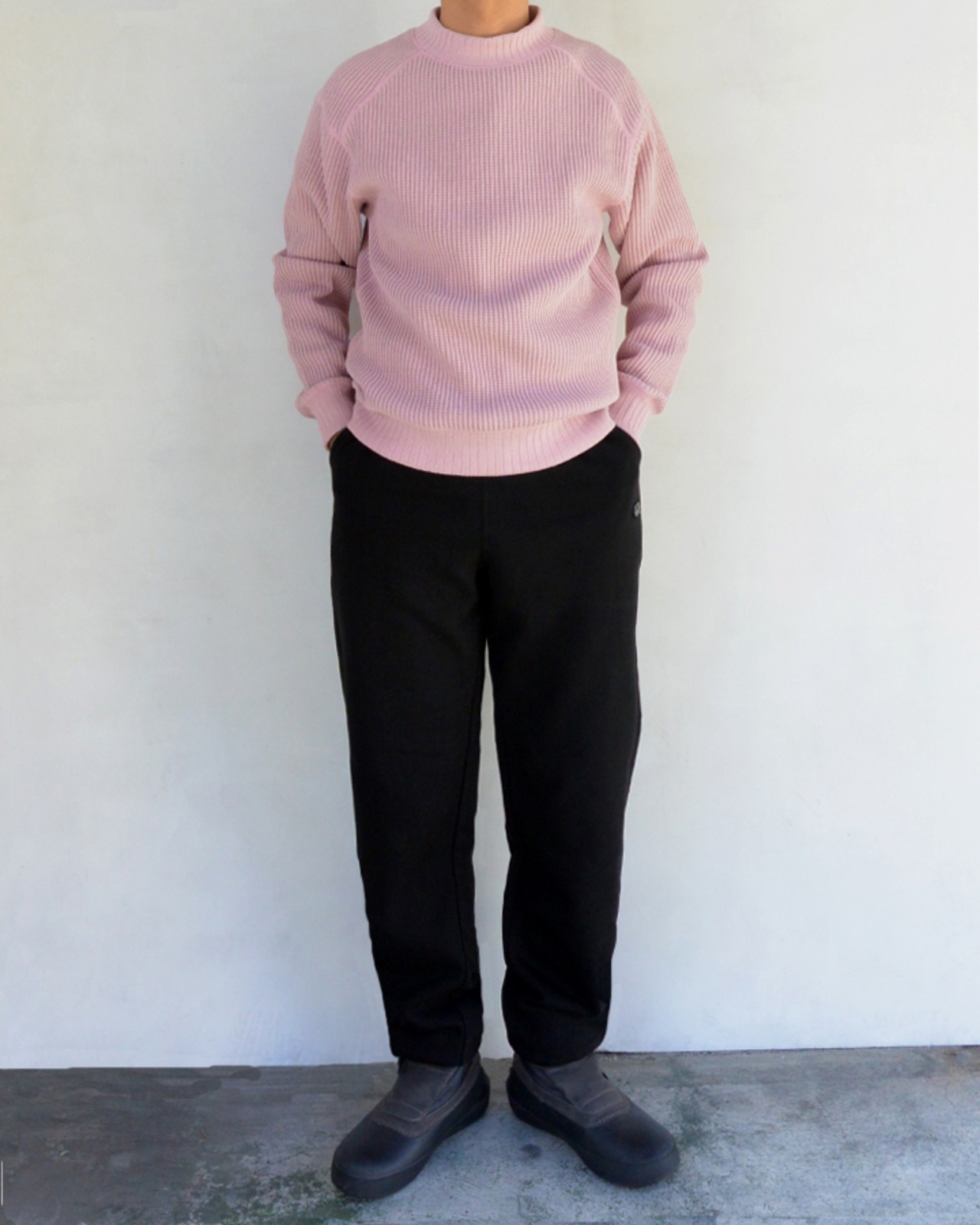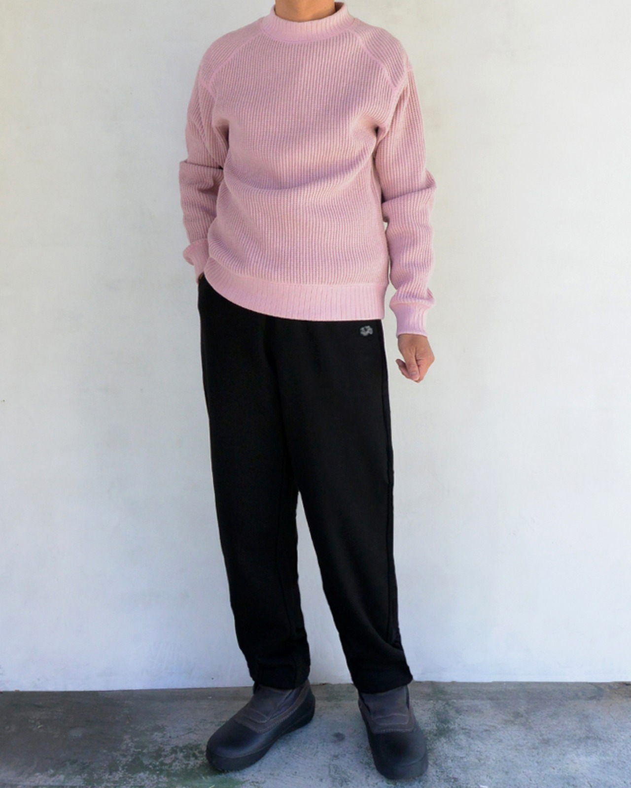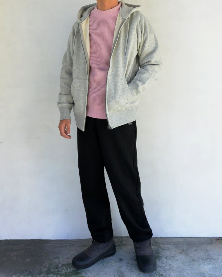 同素材のスウェットシャツとセットアップで着用したり、シンプルなデザインで幅広いコーディネートが出来ます。