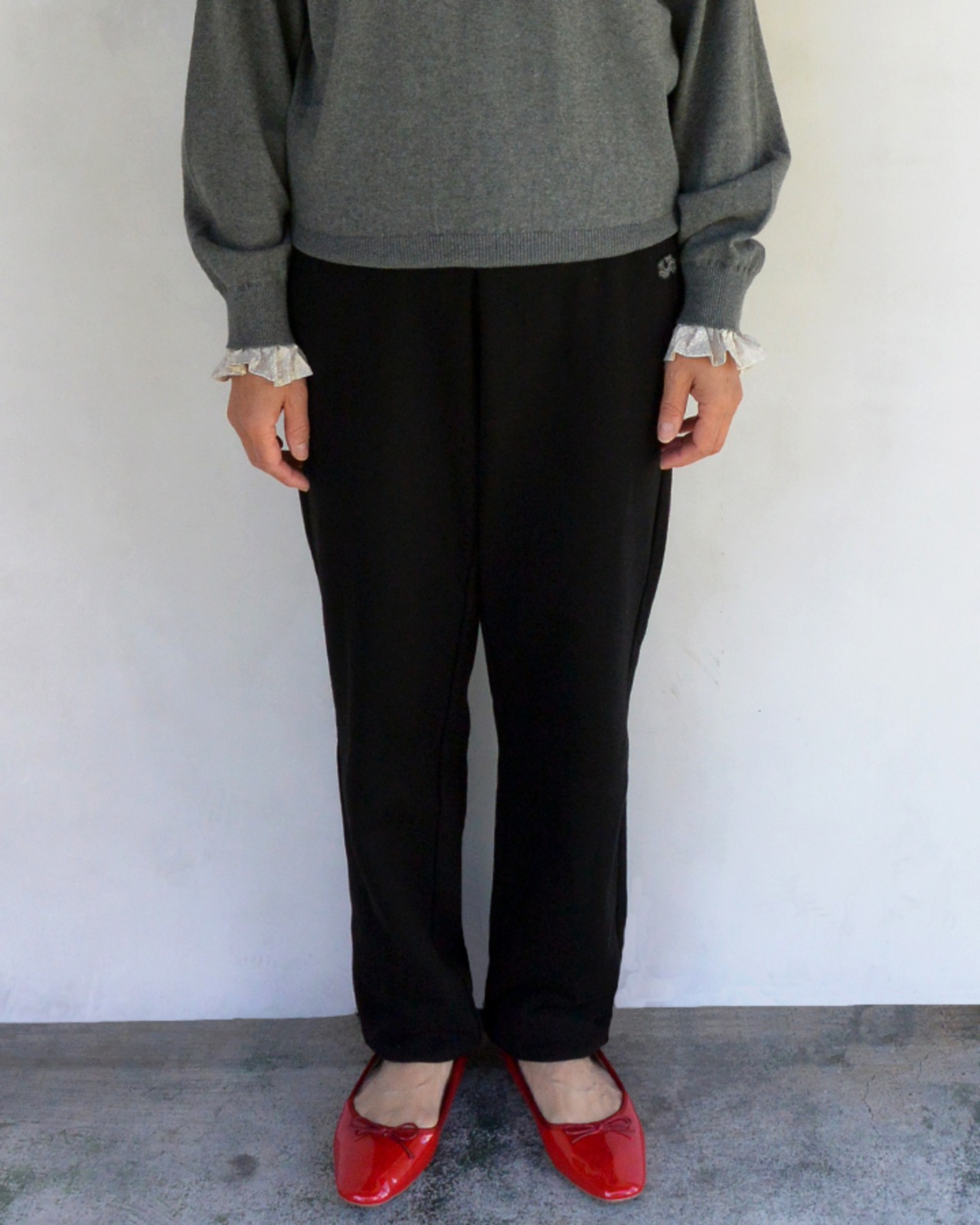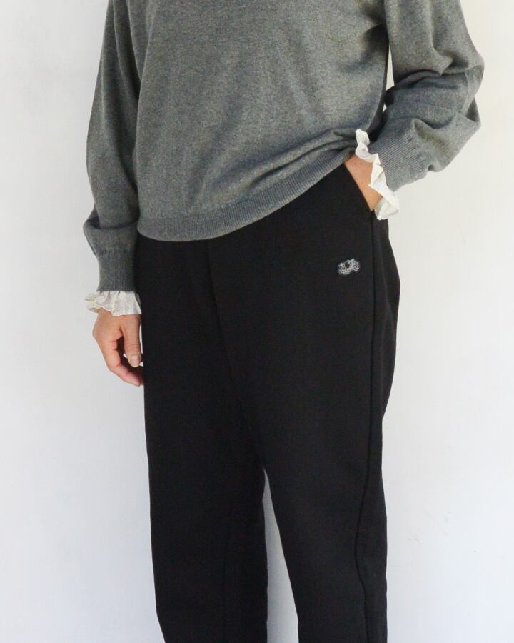 裾ゴム仕様のジョガータイプに程良い太さのシルエット、バックポケットは片玉縁のスッキリとしたキレイなディティールになっています。