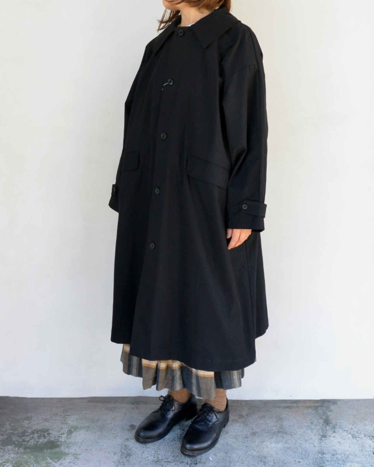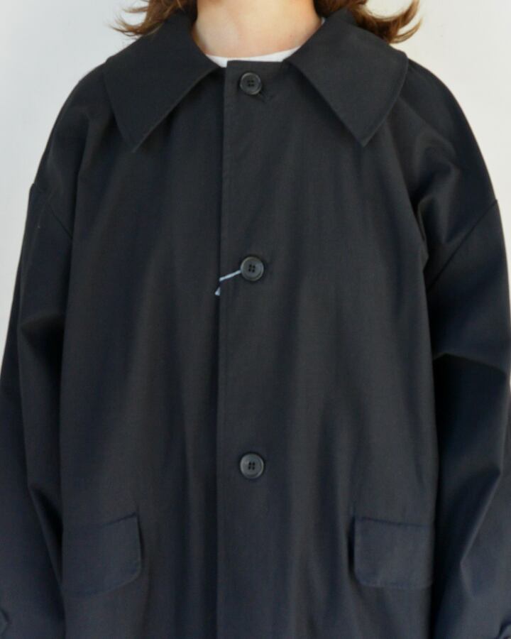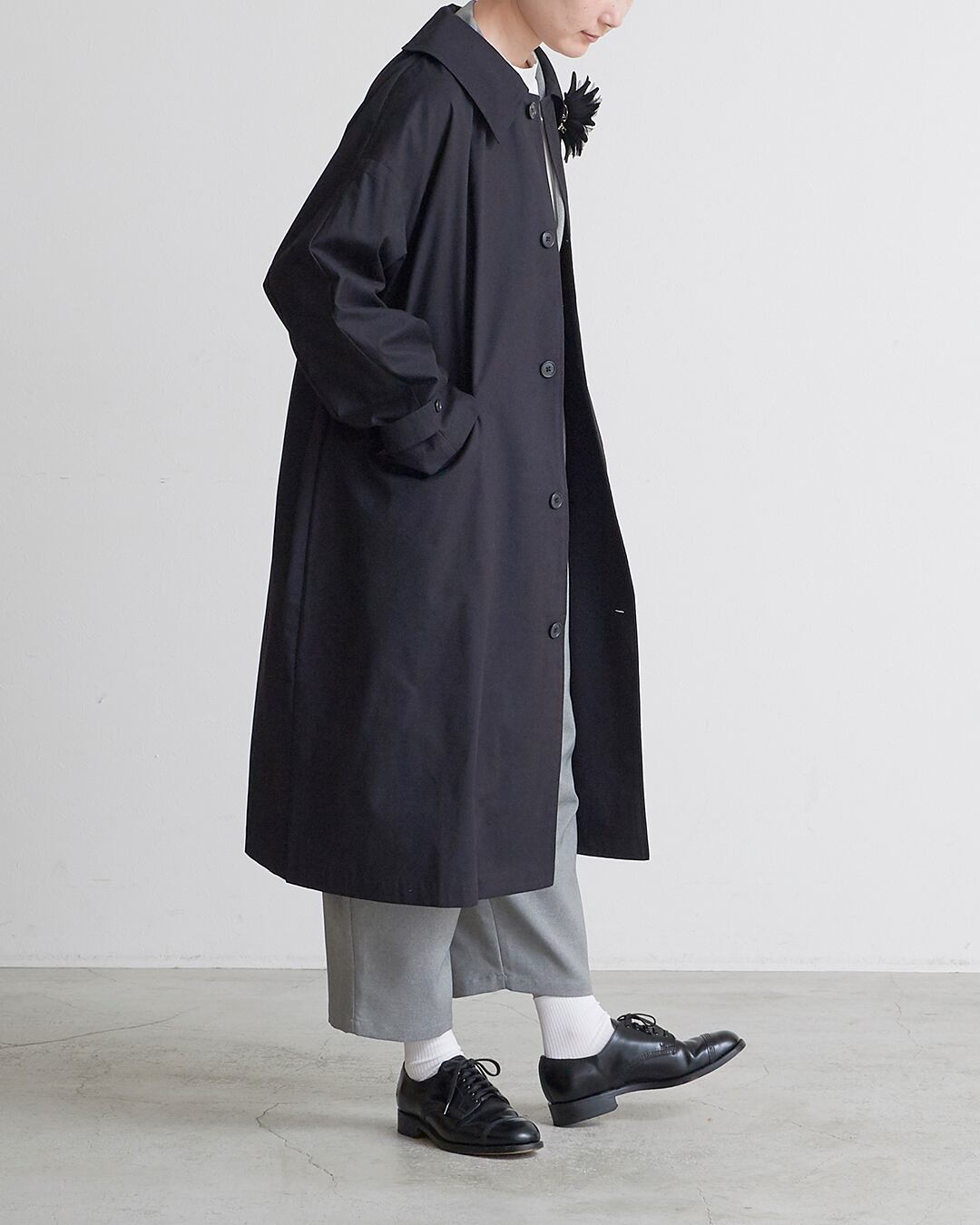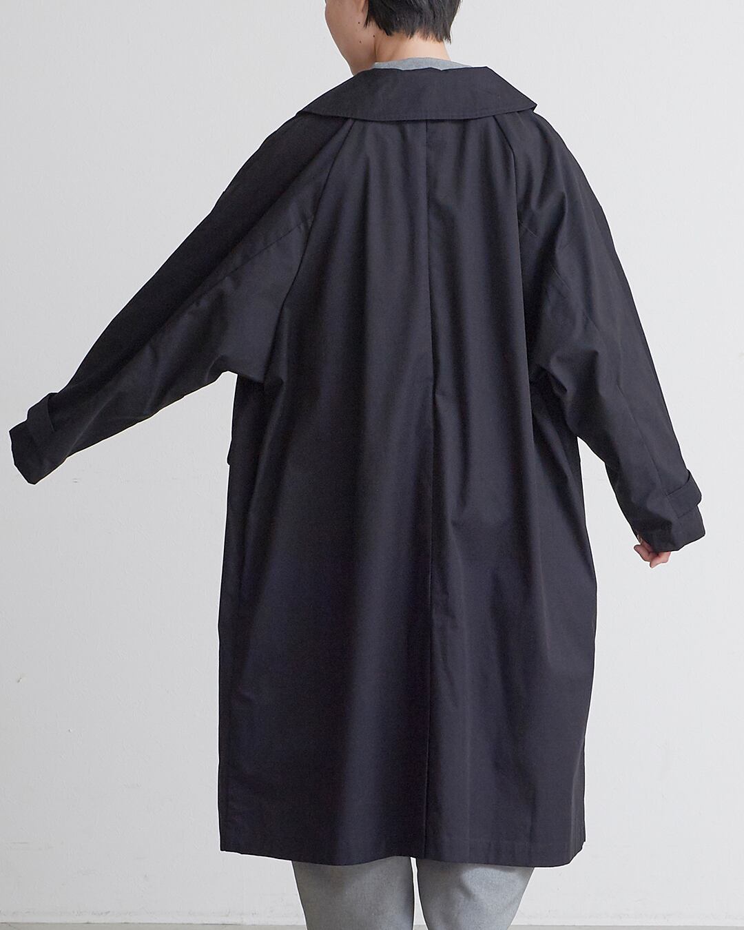 un cinq アンサンクハイカウントツイル ワイドカラーコート Black
