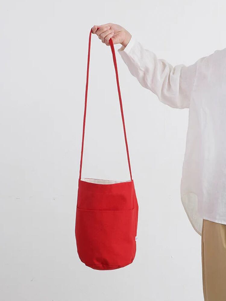縦長のバケツ型のショルダーバッグで、外側と内側にそれぞれ1つポケットを配したシンプルなデザインのBAG。