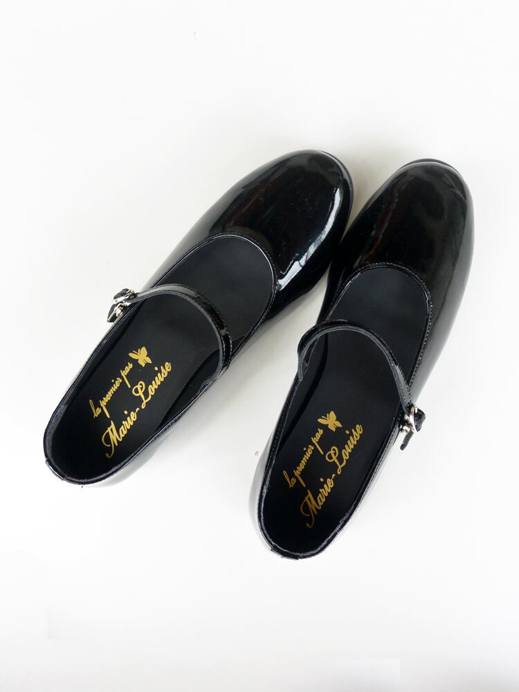 クラシックな印象の美しいカットが魅力のエナメルワンストラップシューズ。