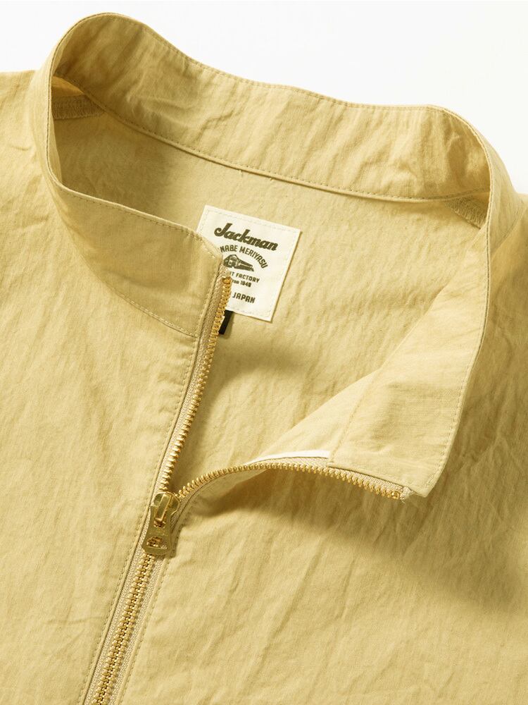 野球選手がトレーニング時に着用するウインドトレーナーをベースにSulfur Herringbone生地を使用しミッドネック仕様、半端袖にする事によってレイヤードの幅が広がるジャケットに仕立てられたウィンドトレーナ。
