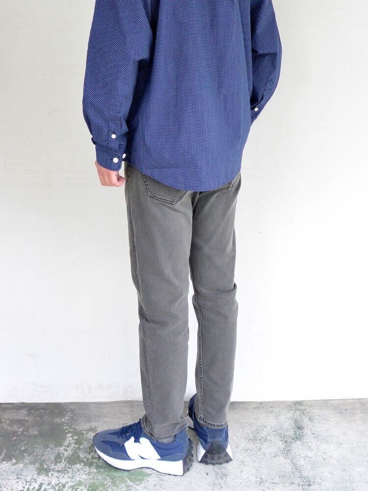 裾に向かってゆるやかにテーパードをかけたすっきりとしたシルエットは、タイトなつくりながらも腰周りを程良く余裕を持たせた包み込むような快適な穿き心地が魅力です。