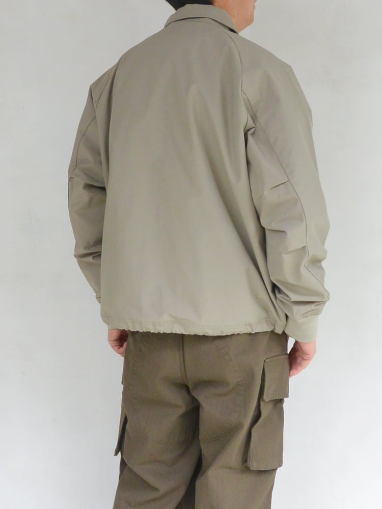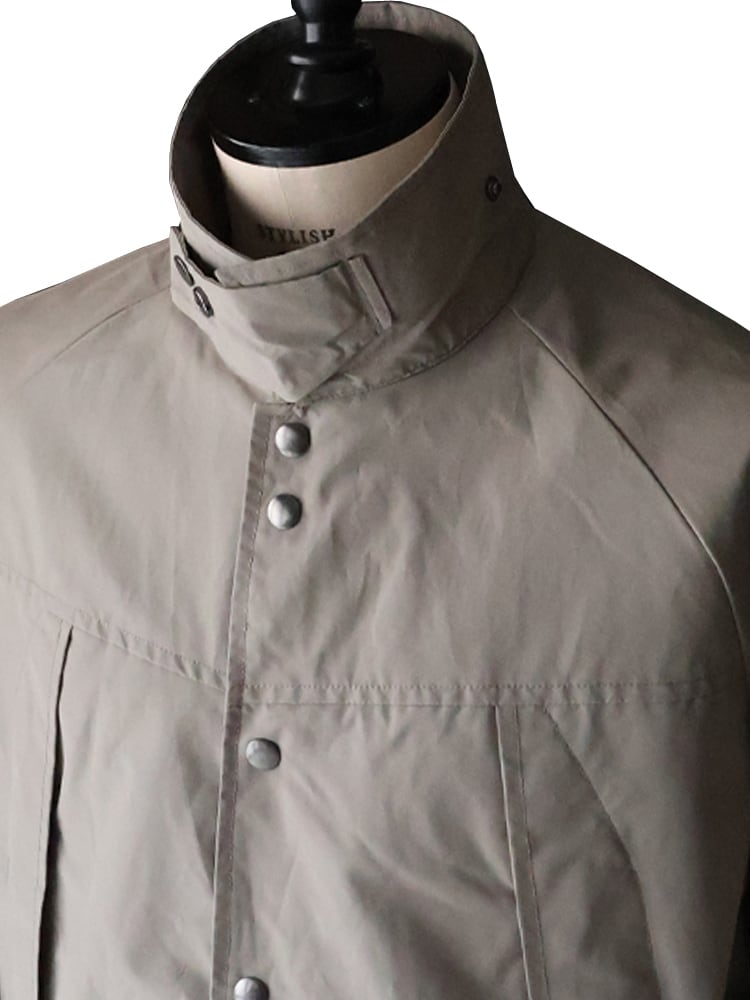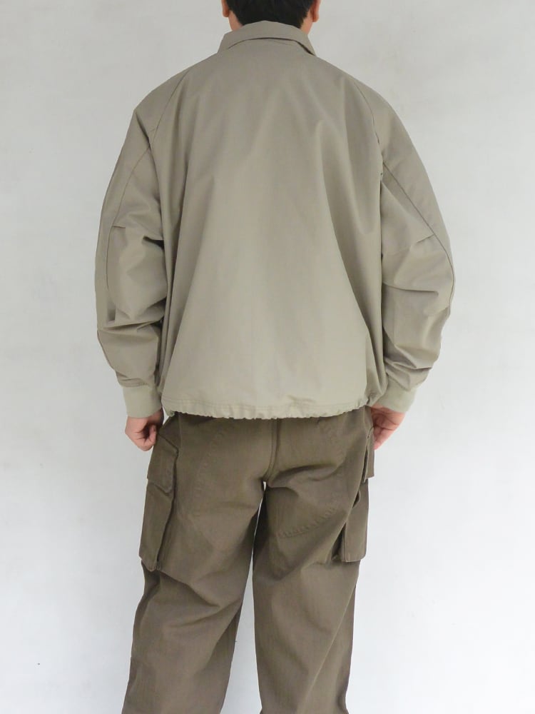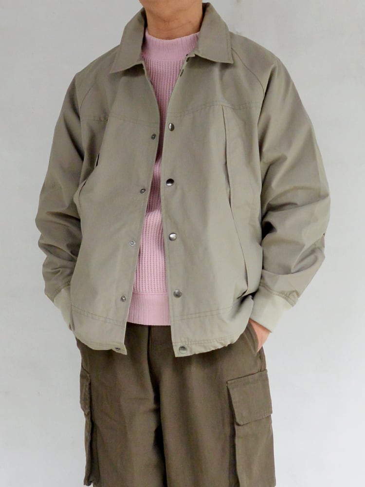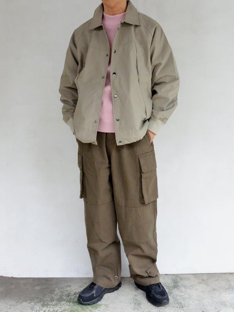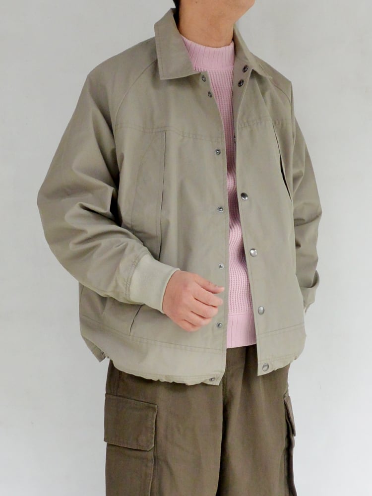 斜めに取り付けられたフロントポケットデザインが秀逸で、フロントをスナップボタンで開閉する襟付きタイプでコーチジャケットの要素をプラスし実用的に欠かせないシームポケットも完備し、裾のドローコードによりを裾を絞ったスタイリングも可能です。