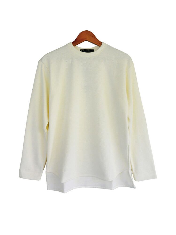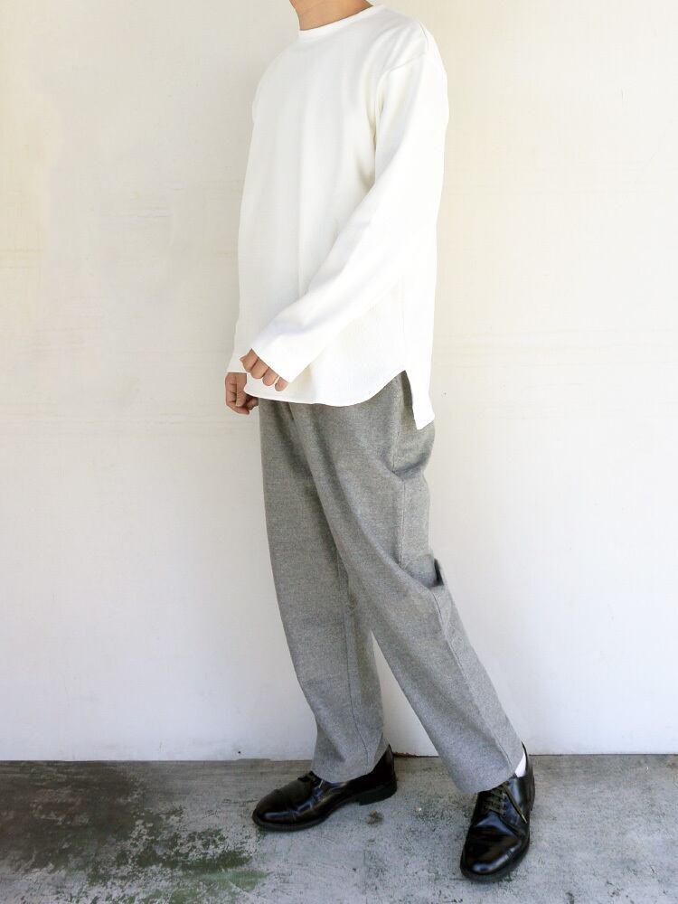 一般的なカットソーとは違い、生地の表面が立体的なハニカム組織になっているのでカジュアル一辺倒にならずきれいめにもオススメです。