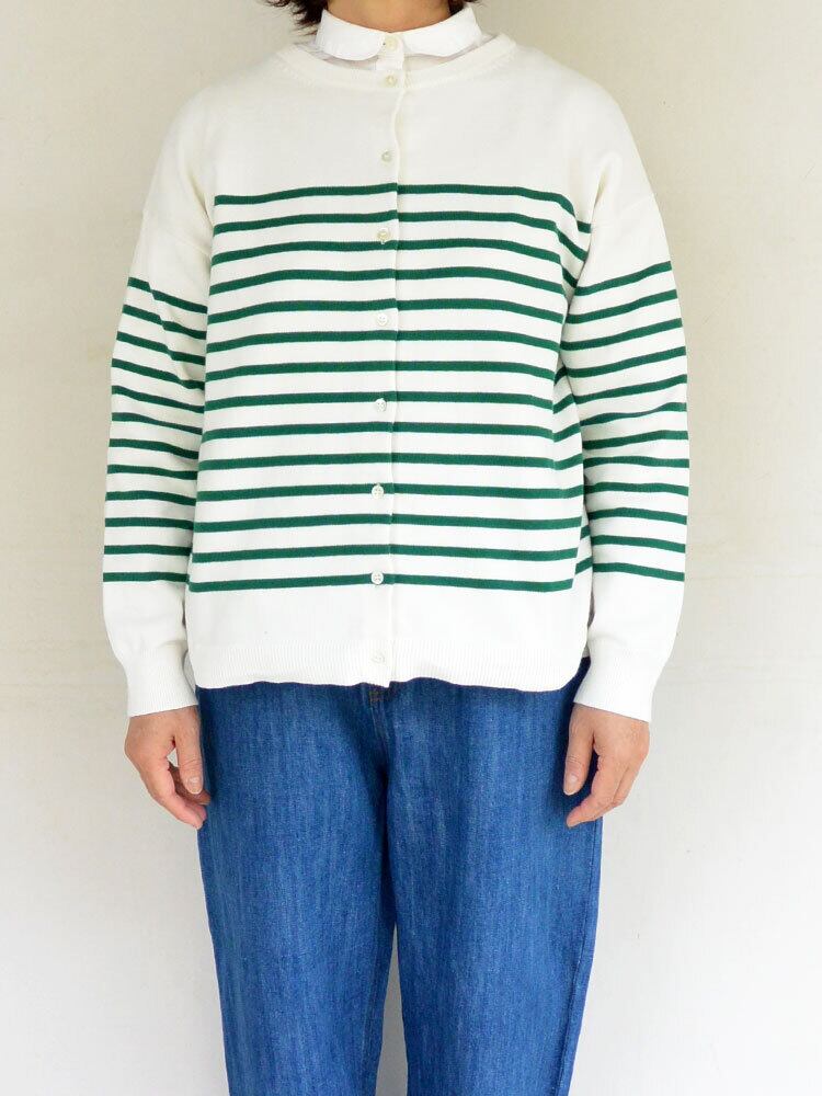 HEAVENLYのコットンポリウレタン混素材を使用したボーダーカーディガン