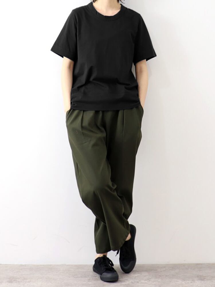 シンプルなアイテムだからこそはっきりと感じる事の出来る素材・シルエット・着心地に拘ったアイテムは大変着回しが効くので色違いで揃えていただきたい1枚です。