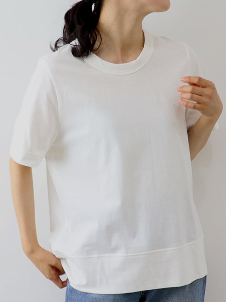 harmonieのオーガニックコットン100%のオリジナル生地を使ったボックスシルエットの天竺Tシャツ。